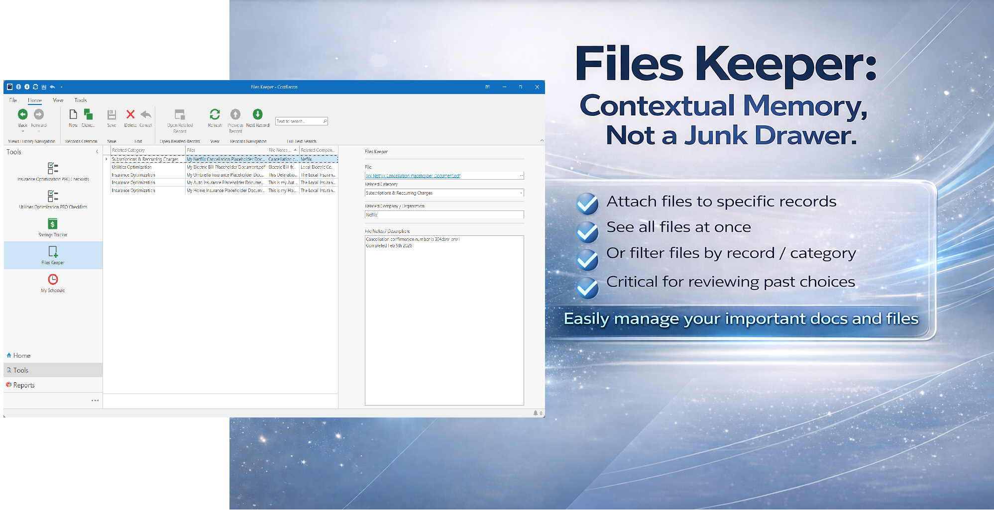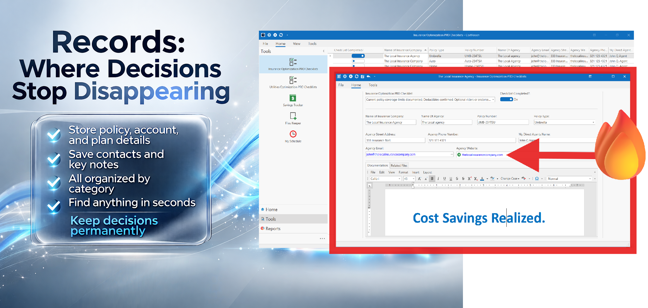 All these set and forget money leaks quietly compound into thousands of dollars over time — not because the decisions were wrong, but because no system exists to preserve them, evaluate them, or prove their value later.